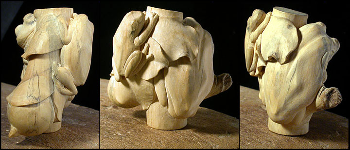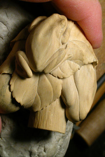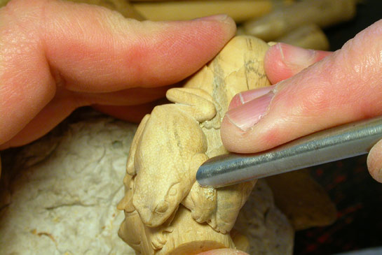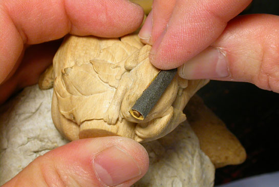 Sanding with 400 grit wet-dry sandpaper wrapped around a skewer for support.