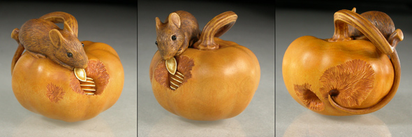 #405 Mouse & Pumpkin Seeds, 2007 The Japanese Boxwood (asama tsuge) was a gift from Japanese netsuke carver, SAKAI Masami.