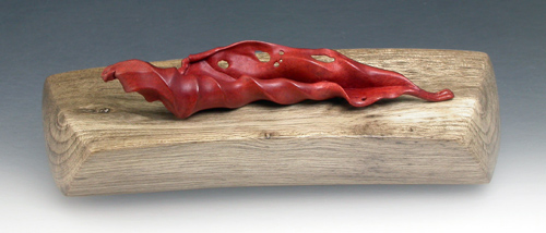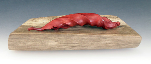 #419 Dried Curled Leaf Material: Pink Ivory Wood Tray: Persimmon