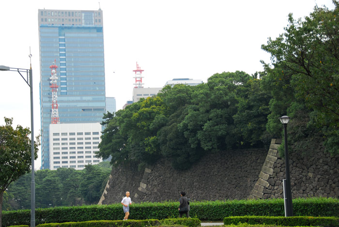 Between touring the two museums, on this gray and cool day, I had hoped to tour the Imperial Gardens. Unfortunately, they were closed. Instead, I viewed the moat and the magnificent stone retaining wall that surrounds the Imperial Palace grounds.