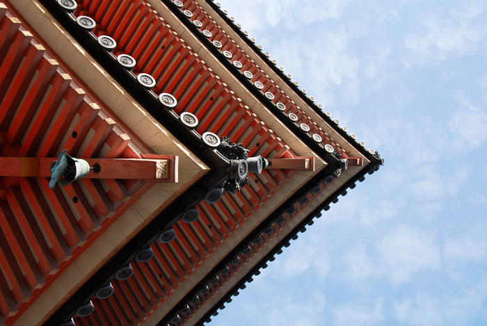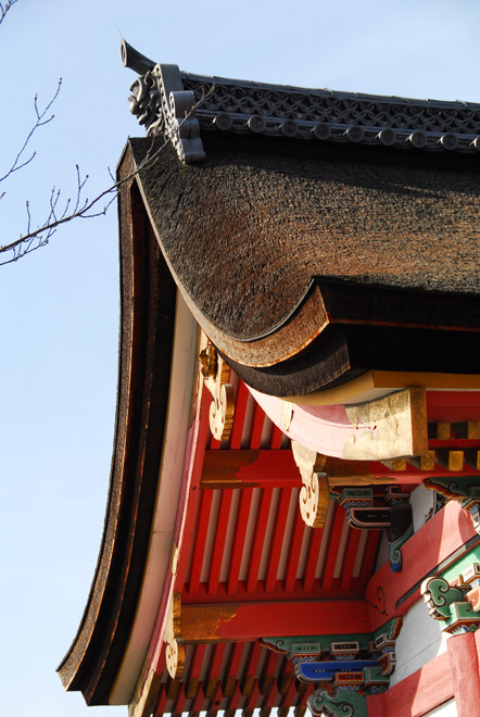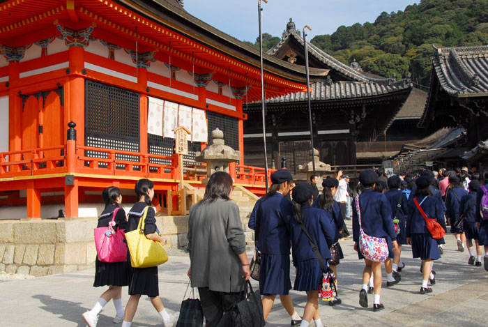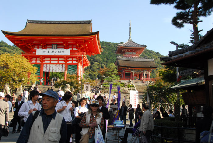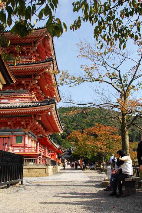 After lunch in the Sannenzaka shop area, we walked up hill towards the Kiyomizu Temple. It is a hugely popular Buddhist temple complex. The original temple dates from the eighth century, and was named for a waterfall on the grounds. ("Kio-mizu" means pure water.)